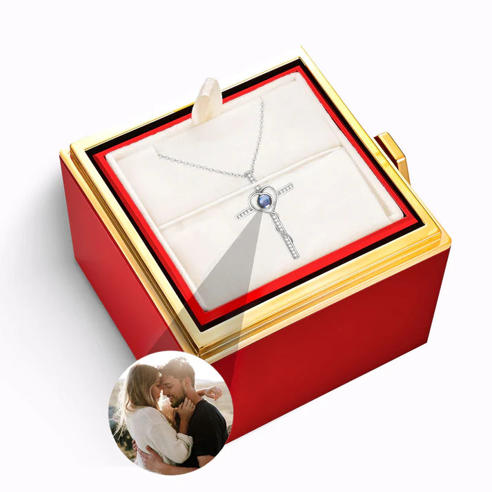 Estuche Rosa Eterna – Collar Cruz de Jesús con Foto Personalizada